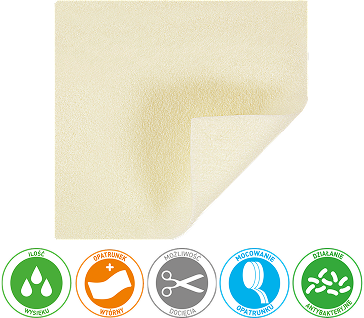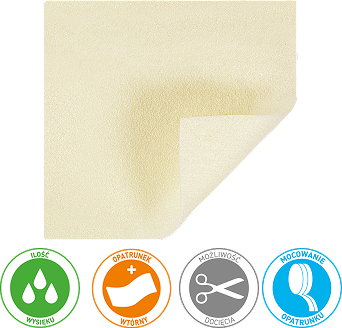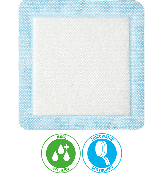 Superchłonny opatrunek na rany z hydrofobową warstwą wierzchnią w postaci kompresu. Wysokie wchłanianie i retencja minimalizuje ryzyko maceracji.