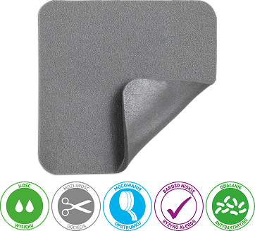 Wszechstronny przeciwbakteryjny opatrunek piankowy o wysokiej skuteczności przeciwbakteryjnej dzięki zawartości siarczanu srebra.