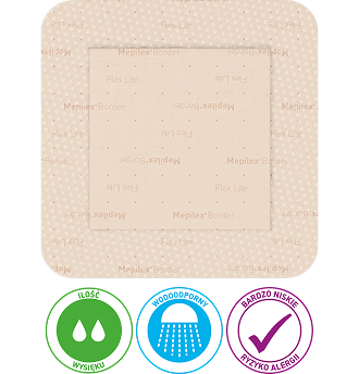 Opatrunek z 5 warstw, bardzo dobrze pochłania i odprowadza wysięk. Mepilex® Border Flex został opracowany dla szerokiej gamy ran z wysiękiem, np. odleżyn, owrzodzeń nóg i stóp, ran urazowych i ran chirurgicznych. Zapewnia wyjątkowe dopasowanie.